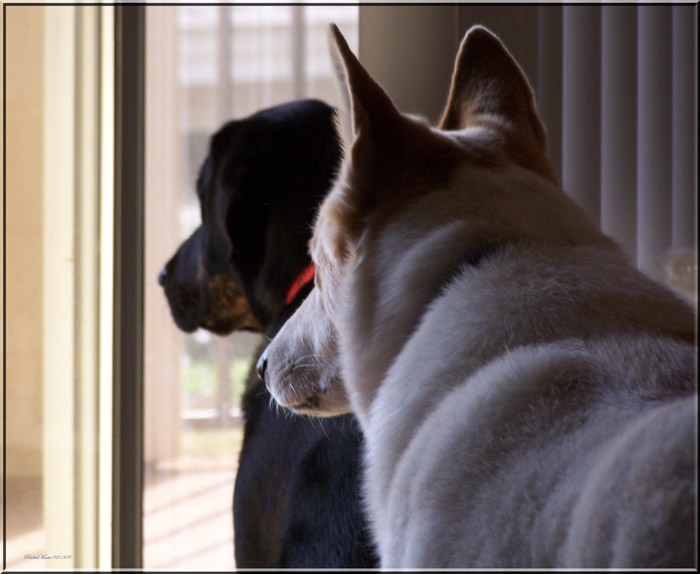 They make an odd pair: one white, one black; one with erect ears, one with floppy ears; one curly tail, one table-clearing tail. Yet, they are inseparable. I can’t imagine life without them.